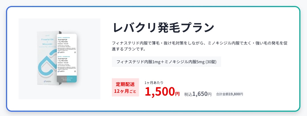 レバクリは2025年現在、フィナステリド(抜け毛予防)+ミノキシジル(発毛)の王道セットが最安水準で購入できるオンラインクリニックです!