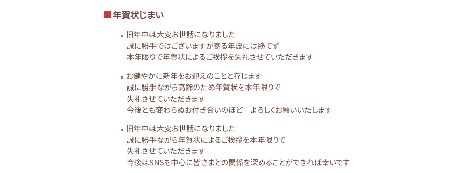 | 公式サイト 年賀状じまいの副文あり | 公式サイト | 公式サイト |