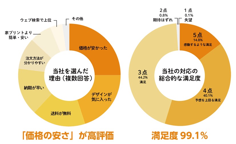 コスパの良さはもちろん、デザインや納期、注文方法のわかりやすさなど様々な点で高評価を獲得してます◎
