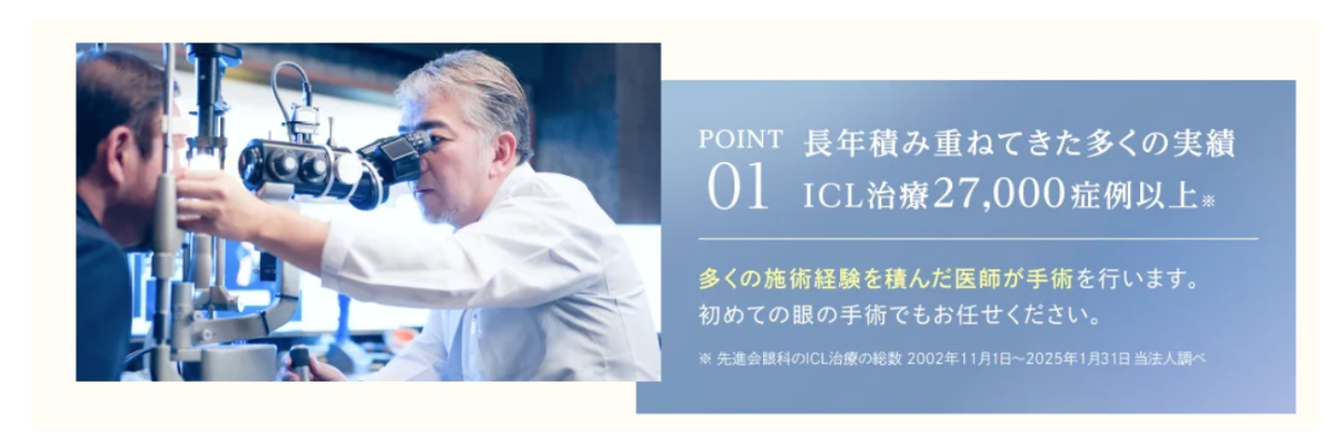 先進会眼科はICL手術、治療の症例が27,000件以上と実績が豊富なクリニックです。