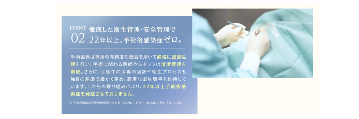 先進会眼科は開院から23年間、術後の感染症はゼロ件です。