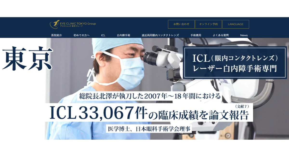 アイクリニック東京はICL治療とレーザー白内障手術の専門クリニックです。東京に2店舗あり、平均で片目1分52秒で終わる短時間手術が好評です。