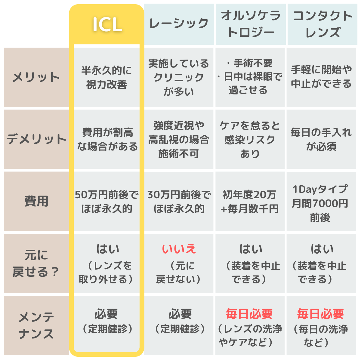 ICLのメリットは?他の施術との違いを徹底比較
