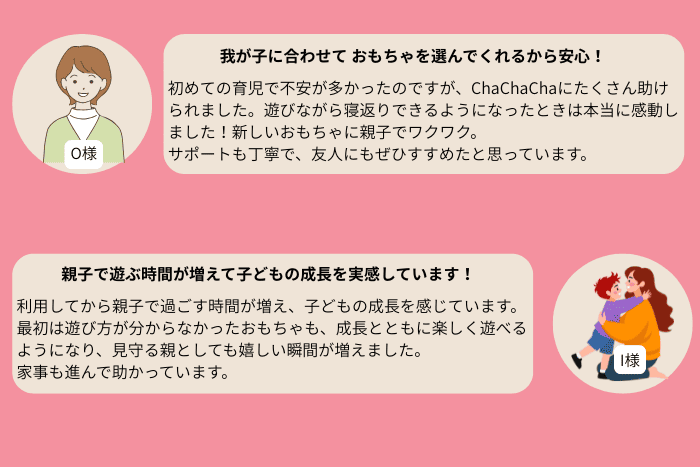 ChaChaChaは、おもちゃ選びの負担を減らしつつ、コスパよく無理なく続けられるおすすめのサービスです。